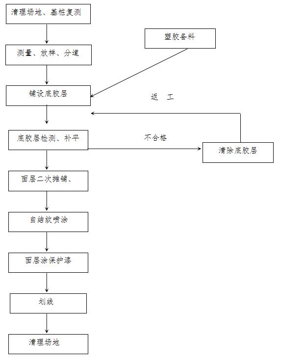 塑胶底胶层铺装工艺:甲组:乙组:催化剂=1:4:0.07。